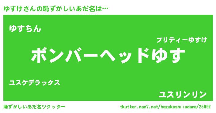 | ヘコむあだ名 | 『ゆすけ(笑)』『ゆすお』『酢こんぶ』 |