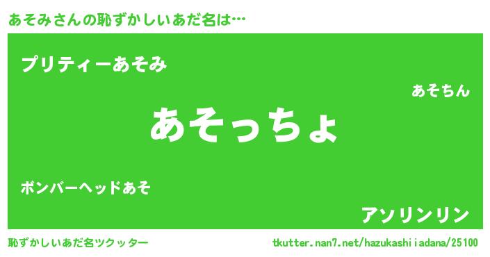 | 意味不明あだ名 | 『あそみフォーエバー』『ペロリンあそみ』 |