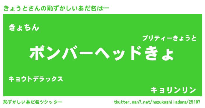 | ヘコむあだ名 | 『きょうと(小並感)』『きょっぺ』 |