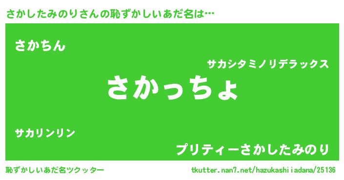 | 欧米人風あだ名 | 『さかしたみのりクリステル』 |