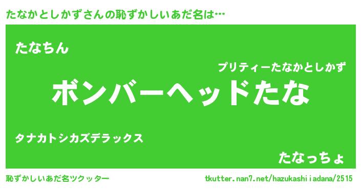 | ヘコむあだ名 | 『たなかとしかず(笑)』『なまこ酢』 |