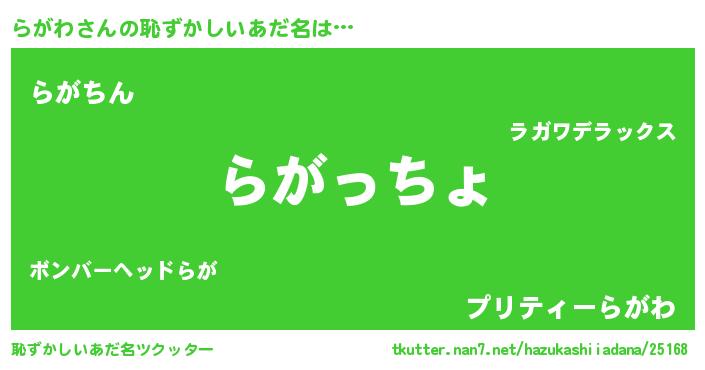 | ヘコむあだ名 | 『牛乳』『らがわ(苦笑)』『らがにー』 |