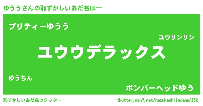 | 意味不明あだ名 | 『自称ゆうう』『ペロリンゆうう』 |
