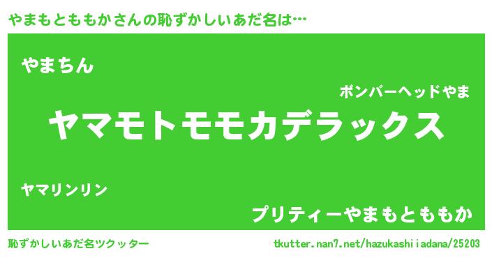 | ヘコむあだ名 | 『やまもとももか(笑)』『やまにー』 |
