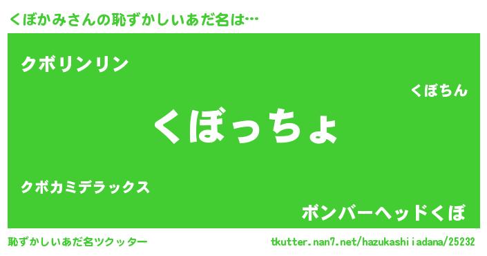 | 意味不明あだ名 | 『くぼかみフォーエバー』 |
