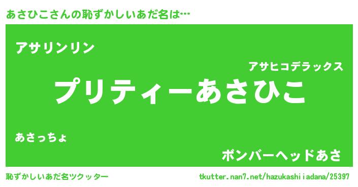 | ヒーロー風カッコイイあだ名 | 『スーパーアサヒコ』『炎刃騎士アサ』 |