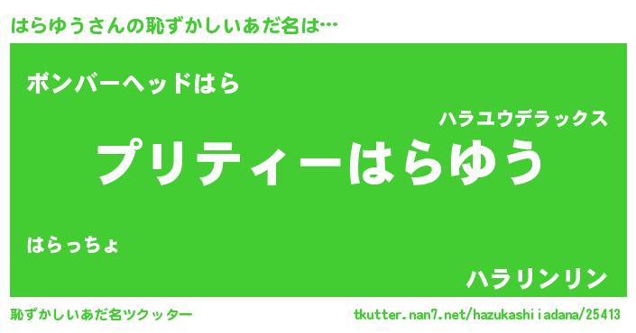 | 意味不明あだ名 | 『ペロリンはらゆう』『自称はらゆう』 |