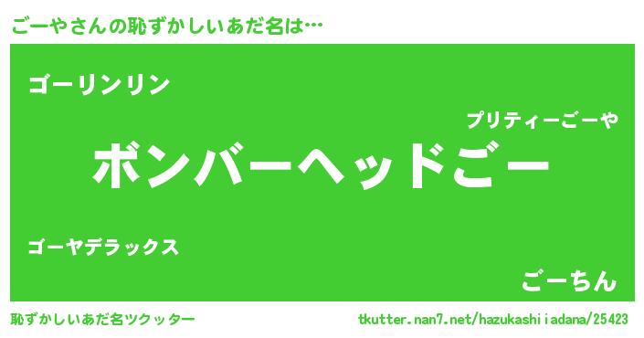 | ヘコむあだ名 | 『ごーお』『ごーや(笑)』『なまこ酢』 |