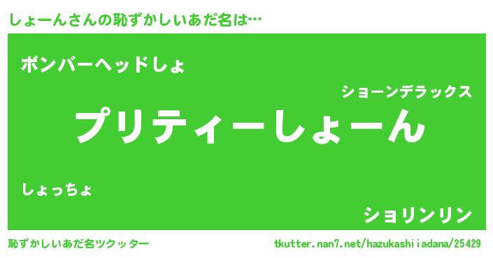 | 胡散臭い通販商品みたいなあだ名 | 『必ず成功するブレスレット…その名も「しょーん」』 |