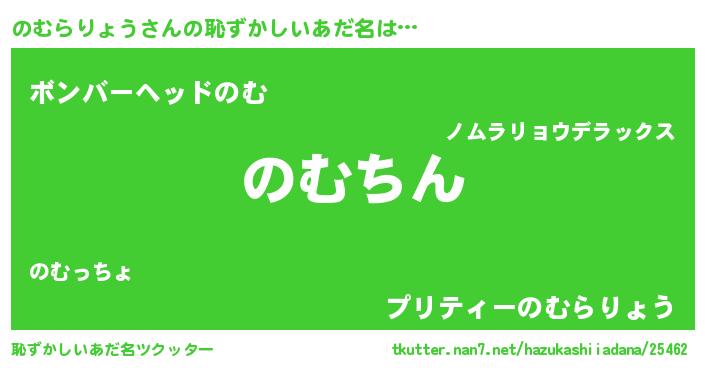 | 男性向けラノベタイトル風あだ名 | 『転生したらのむらりょうだった件』 |