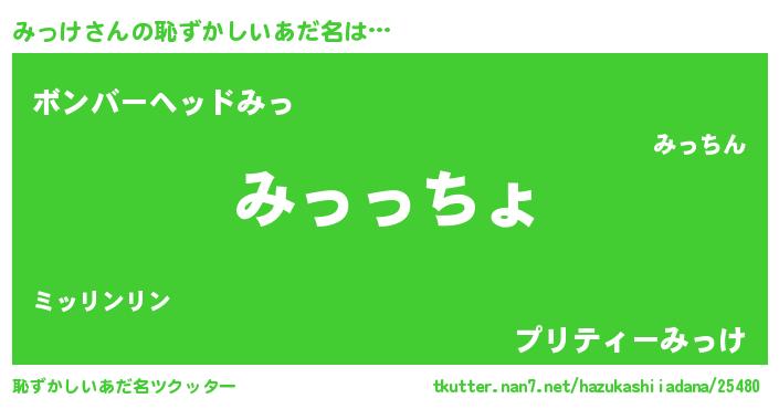 | ヒーロー風カッコイイあだ名 | 『ウルトラみっけマン』『仮面ミッダー』 |