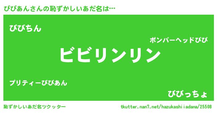 | ポケモン風あだ名 | 『ヒビビアン』『ゼニビビ』 |