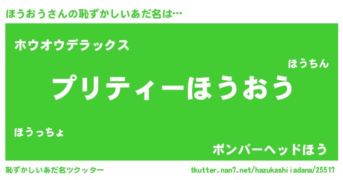 | 意味不明あだ名 | 『ペロリンほうおう』『自称ほうおう』 |