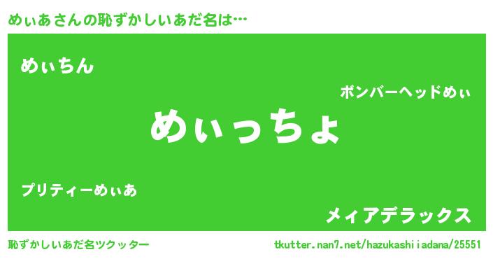 | 意味不明あだ名 | 『ヨモギ科めぃあ属』『永久保存めぃあ』 |