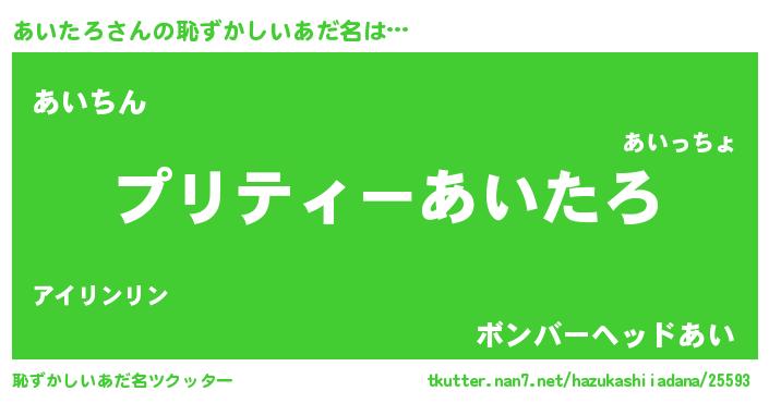| 意味不明あだ名 | 『ペロリンあいたろ』『永久保存あいたろ』 |