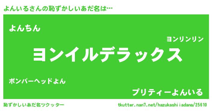 | 意味不明あだ名 | 『自称よんいる』『永久保存よんいる』 |
