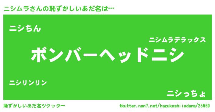 | ヒーロー風カッコイイあだ名 | 『正義の使者ニシムラ』『仮面ニシダー』 |