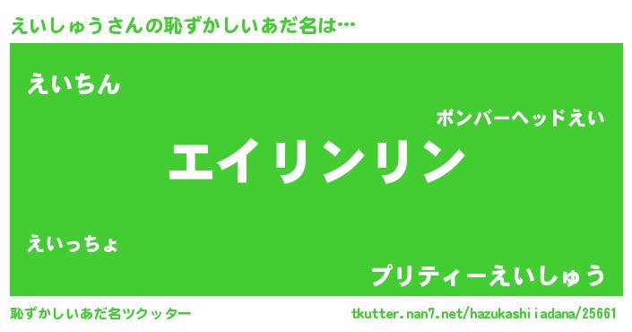 | ヘコむあだ名 | 『えいぷりん』『えいしゅう(小並感)』 |