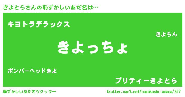 | ヒーロー風カッコイイあだ名 | 『ウルトラきよとらマン』『仮面キヨダー』 |