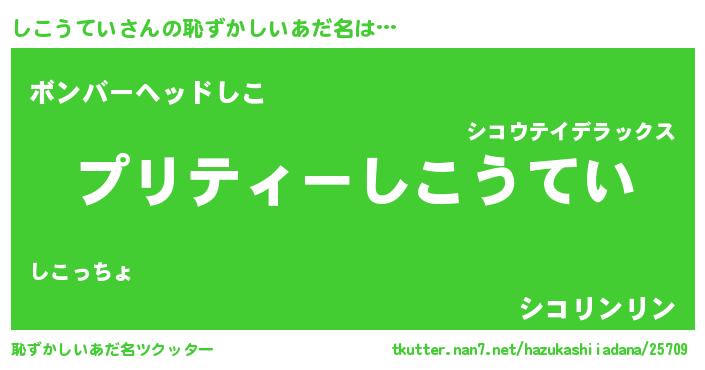 | ヒーロー風カッコイイあだ名 | 『スーパーシコウテイ』『黄金騎士シコ』 |