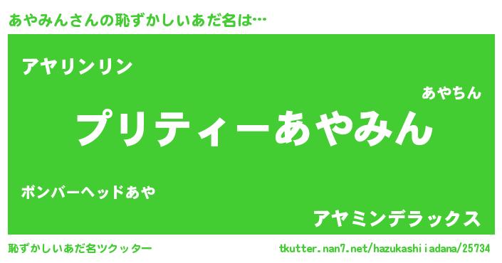 | ヒーロー風カッコイイあだ名 | 『スーパーアヤミン』『仮面アヤダー』 |