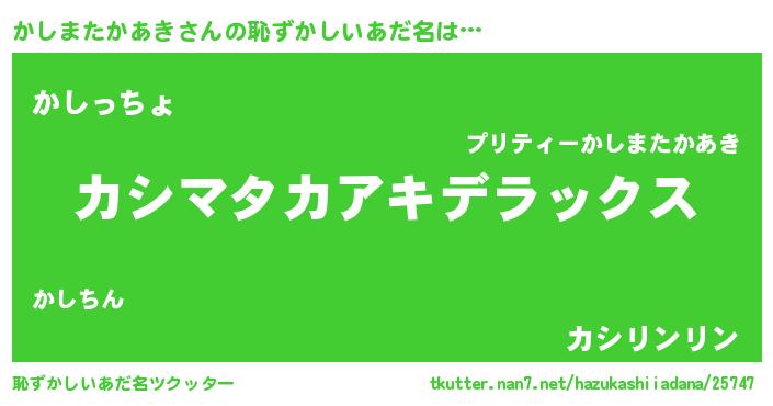 | 肩書あだ名 | 『かしまたかあき閣下』 |