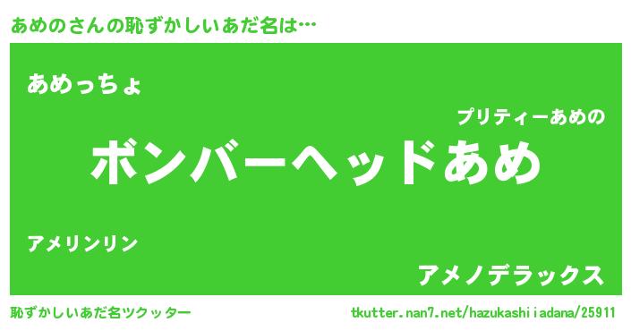 | 意味不明あだ名 | 『住所不定無職あめの(8歳)』『自称あめの』 |