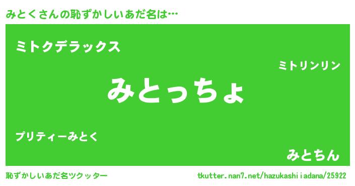 | 意味不明あだ名 | 『みとくフォーエバー』『自称みとく』 |