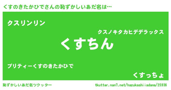 | ヘコむあだ名 | 『くすのきたかひで(爆)』『くすお』 |