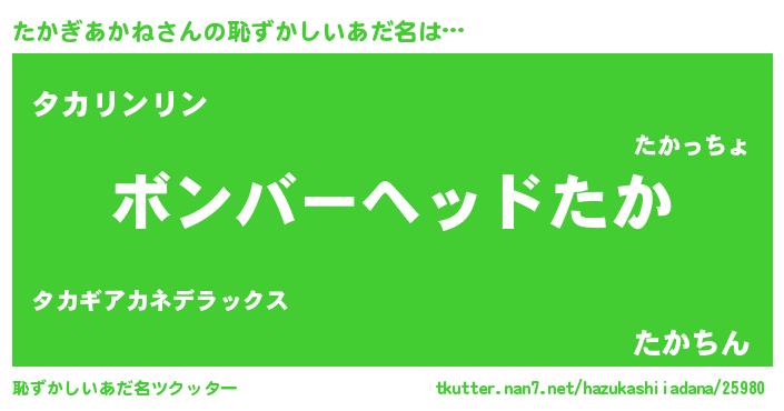 | ヘコむあだ名 | 『たかを』『たかぎあかね(笑)』 |