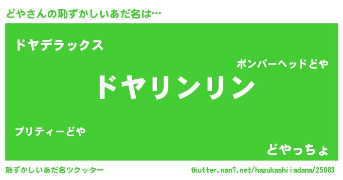 | ヘコむあだ名 | 『どや太郎』『なまこ酢』『どやもー』 |