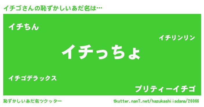 | ヘコむあだ名 | 『なまこ酢』『イチゴ(爆)』『イチお』 |
