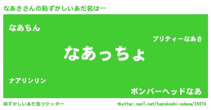 | 男性向けラノベタイトル風あだ名 | 『転生したらなあさだった件』 |