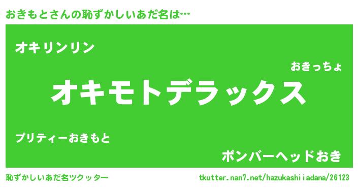 | 意味不明あだ名 | 『自称おきもと』『おきもとフォーエバー』 |