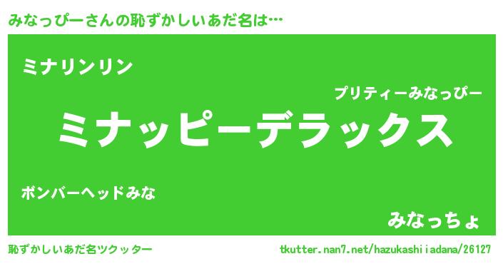 | ヒーロー風カッコイイあだ名 | 『究極戦士ミナッピー』『仮面ミナダー』 |