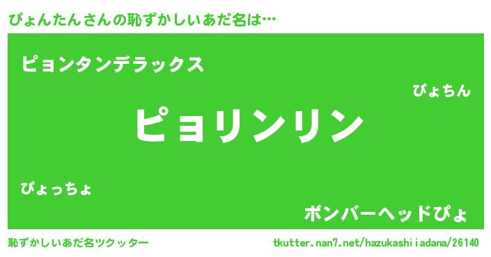 | 男性向けラノベタイトル風あだ名 | 『ぴょんたんの嫁は女の子じゃないと思った?』 |