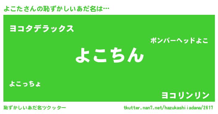 | ヘコむあだ名 | 『よこた(小並感)』『よこぷりん』 |