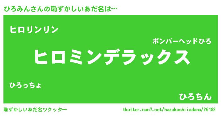 | 男性向けラノベタイトル風あだ名 | 『転生したらひろみんだった件』 |