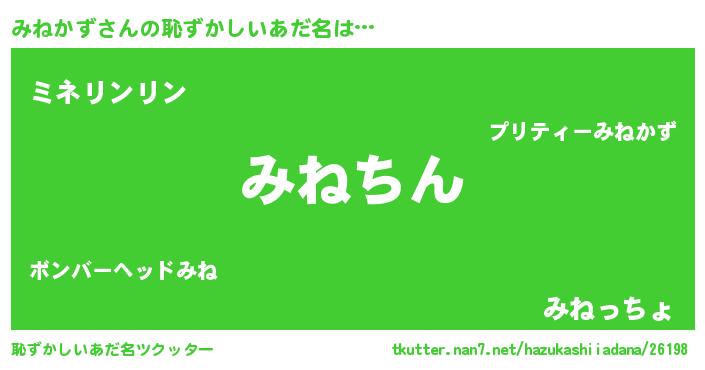 | 意味不明あだ名 | 『永久保存みねかず』『ペロリンみねかず』 |