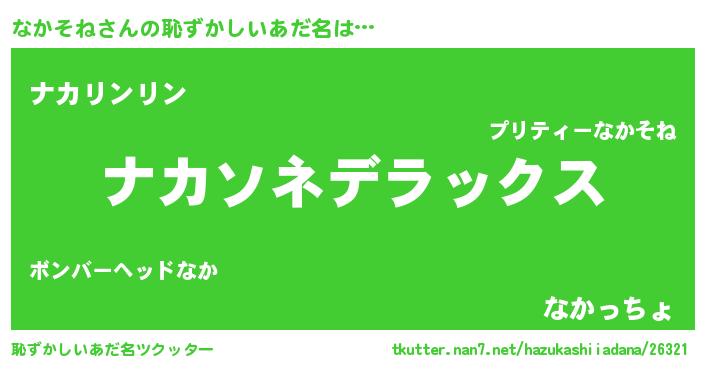 | 意味不明あだ名 | 『自称なかそね』『しいたけ科なかそね属』 |