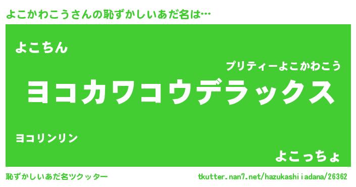 | 男性向けラノベタイトル風あだ名 | 『ヨコカワコウスレイヤー』 |