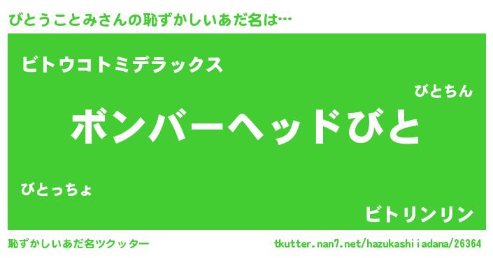| ヘコむあだ名 | 『びと太郎』『びとうことみ(爆)』 |