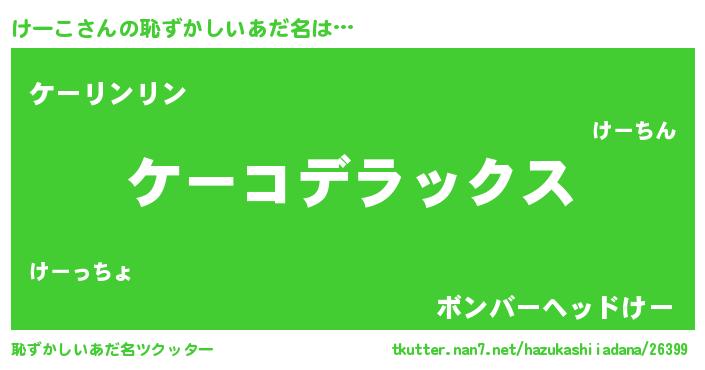 | ヒーロー風カッコイイあだ名 | 『究極戦士ケーコ』『銀牙騎士ケー』 |