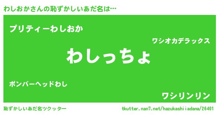 | ヒーロー風カッコイイあだ名 | 『仮面ワシダー』『ウルトラわしおかマン』 |