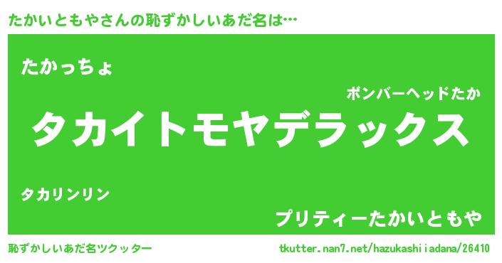 | ヒーロー風カッコイイあだ名 | 『仮面タカダー』『スーパータカイトモヤ』 |
