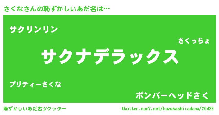 | ヒーロー風カッコイイあだ名 | 『仮面サクダー』『究極戦士サクナ』 |