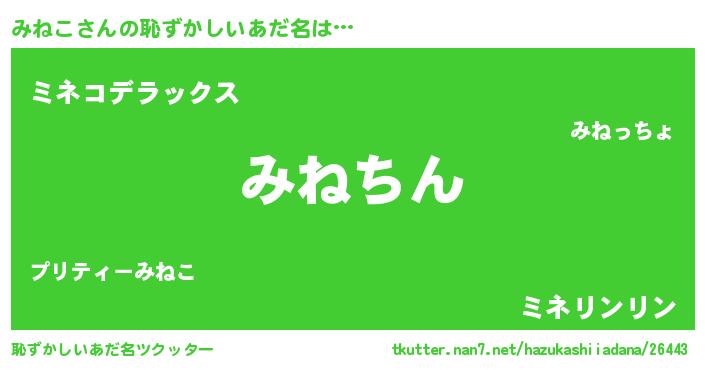 | 男性向けラノベタイトル風あだ名 | 『みねこという概念が存在しない退屈な世界 』 |