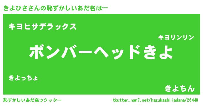 | 男性向けラノベタイトル風あだ名 | 『きよひさに滅ぼされるだけの簡単なお仕事です』 |