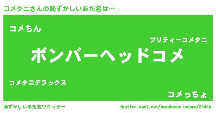 | 女子向けラノベタイトル風あだ名 | 『コメタニ恋絵巻』『コメタニ伯爵の花嫁』 |