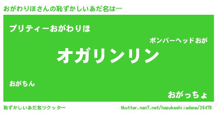 | 女子向けラノベタイトル風あだ名 | 『おがわりほは平凡を望む』 |